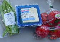 ※美味しい田舎のオカベや長〜いジャンボインゲンと調理用トマト。(このトマトは、後ほど詳しく紹介しましょう。) |