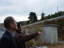 案内役の畠山さんと眞鍋さんがみかん栽培や地域について山を見ながら説明。行政との接点は農家にとっても一途の望みでもある。昔、多くの農民がこの地を切り開いてみかんを栽培したと聞いた。今では“出水みかん”として知名度があるが、先駆者の苦労は並大抵ではなかっただろう。今でも色々な問題を抱えながら、それでも山を守り、美味しいみかんを育て、新しい品種改良などをおこないさらに挑戦は続いている。