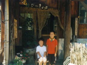 ←Mびっきょ亭の木戸口にて。私の息子と近所の子供です。 |